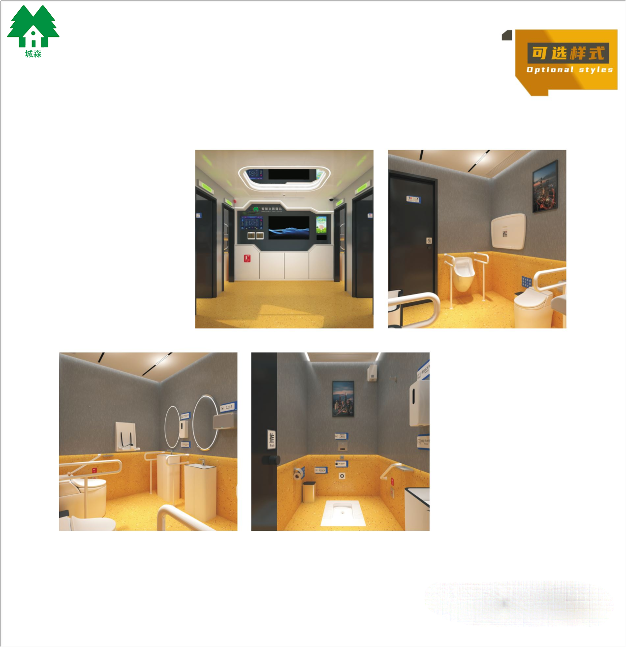 智能运维:扫码开门/自动消毒/故障预警,降本30%;环保节能:太阳能+生物降解,零污染;快速搭建:模块化48小时落地,适配景区/活动/应急;人性设计:UV杀菌/SOS按钮/母婴室,安全无忧